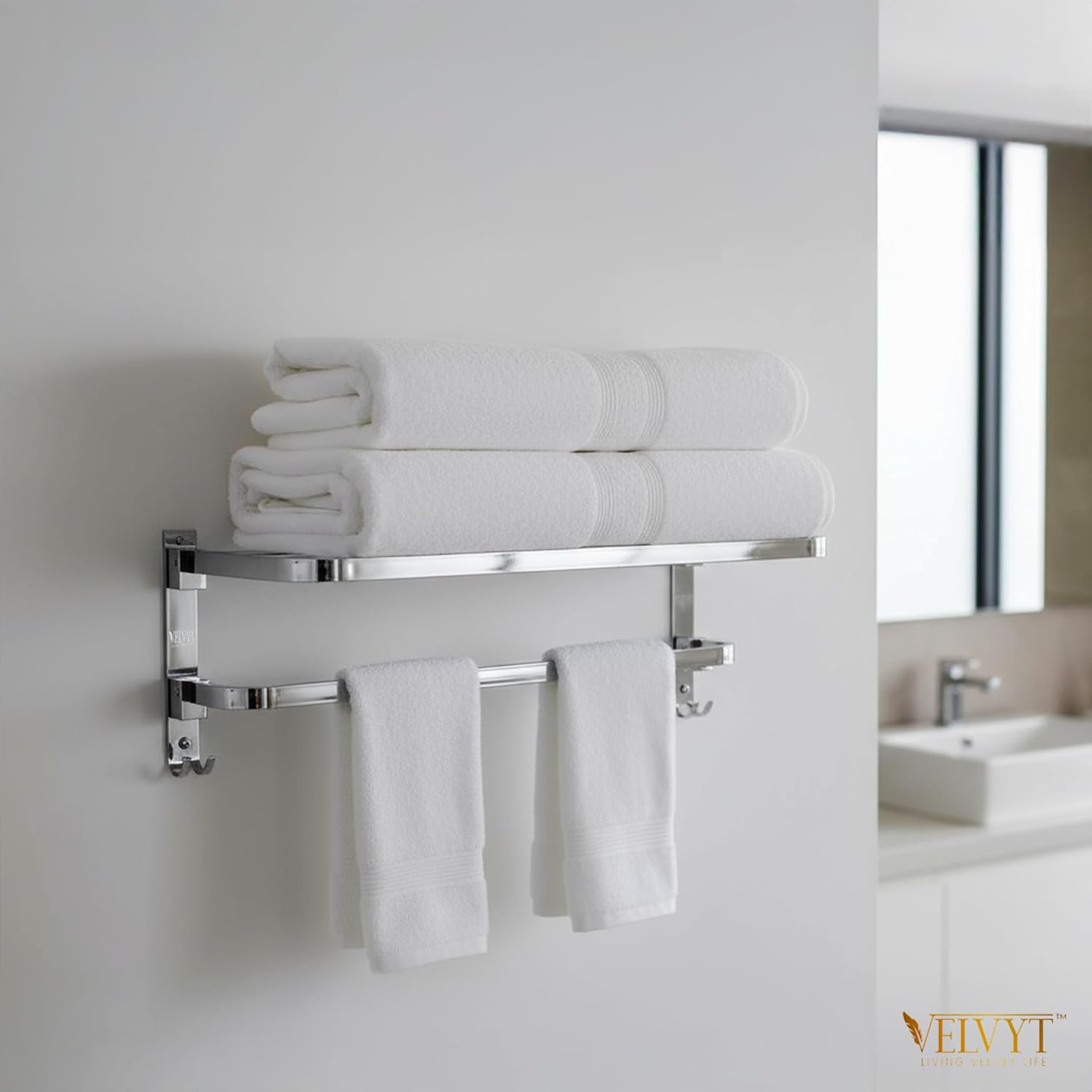 “This towel rack adds a modern and classy touch to my bathroom. The chrome finish looks luxurious and matches perfectly with my fittings.”