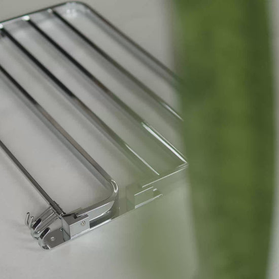 Dual Folding Space-Saving Design – The innovative dual-fold bars expand for drying towels and fold flat when not in use, making this bathroom towel rack for wall and hanger for bathroom a perfect choice for compact modern bathrooms.
