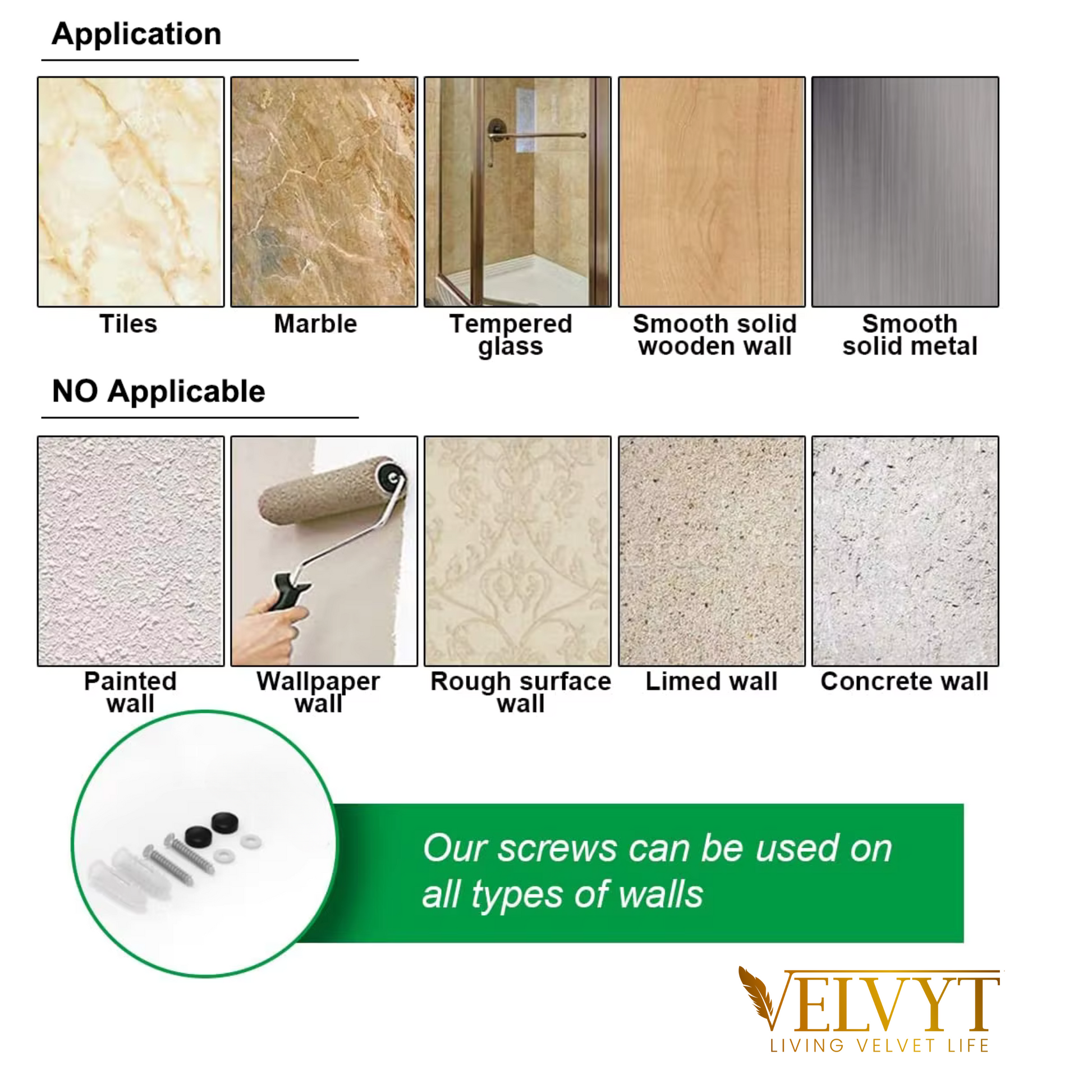 Strong Adhesive & Tool-Free Installation – The VELVYT LuxeShelf features a high-strength adhesive for a secure, drill-free setup. No damage to walls, making it perfect for renters and homeowners alike.