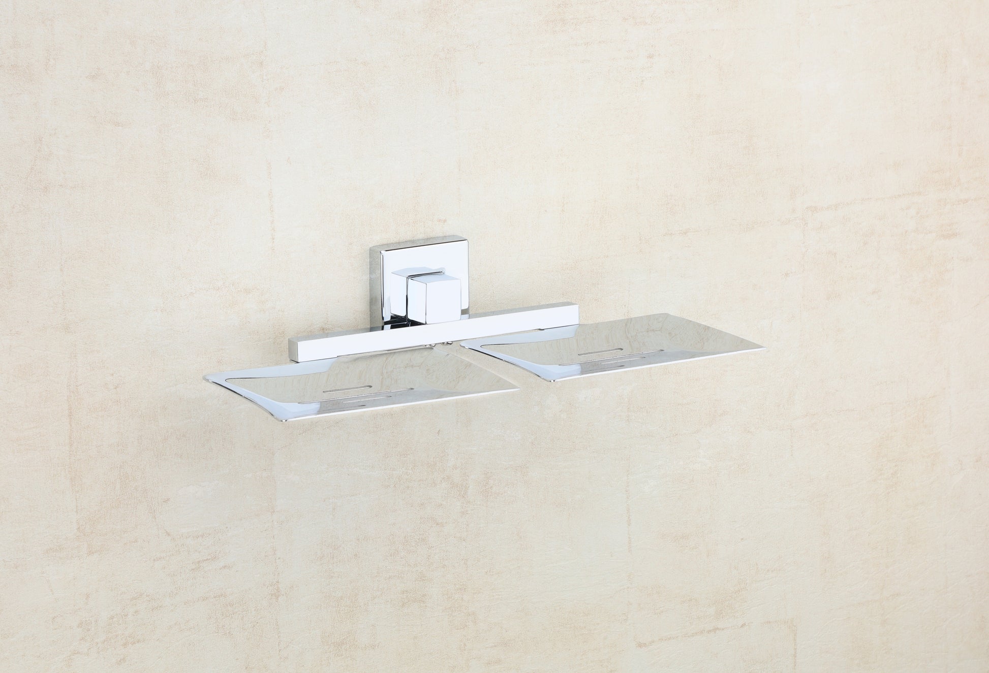 Designed for wall mounting, this dual soap dish holder for bathroom maximizes space near wash basins, sinks, or showers. Perfectly complements other wash basin accessories and bathroom racks.