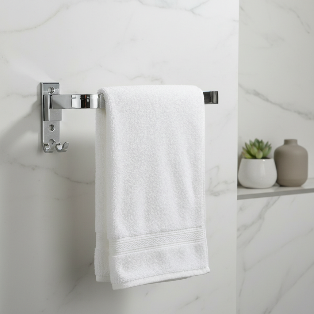 Strong and sturdy construction ensures durability and easy wall mounting. The compact form of this towel holder allows effortless installation, fitting neatly in bathrooms, kitchens, or beside wash basins.